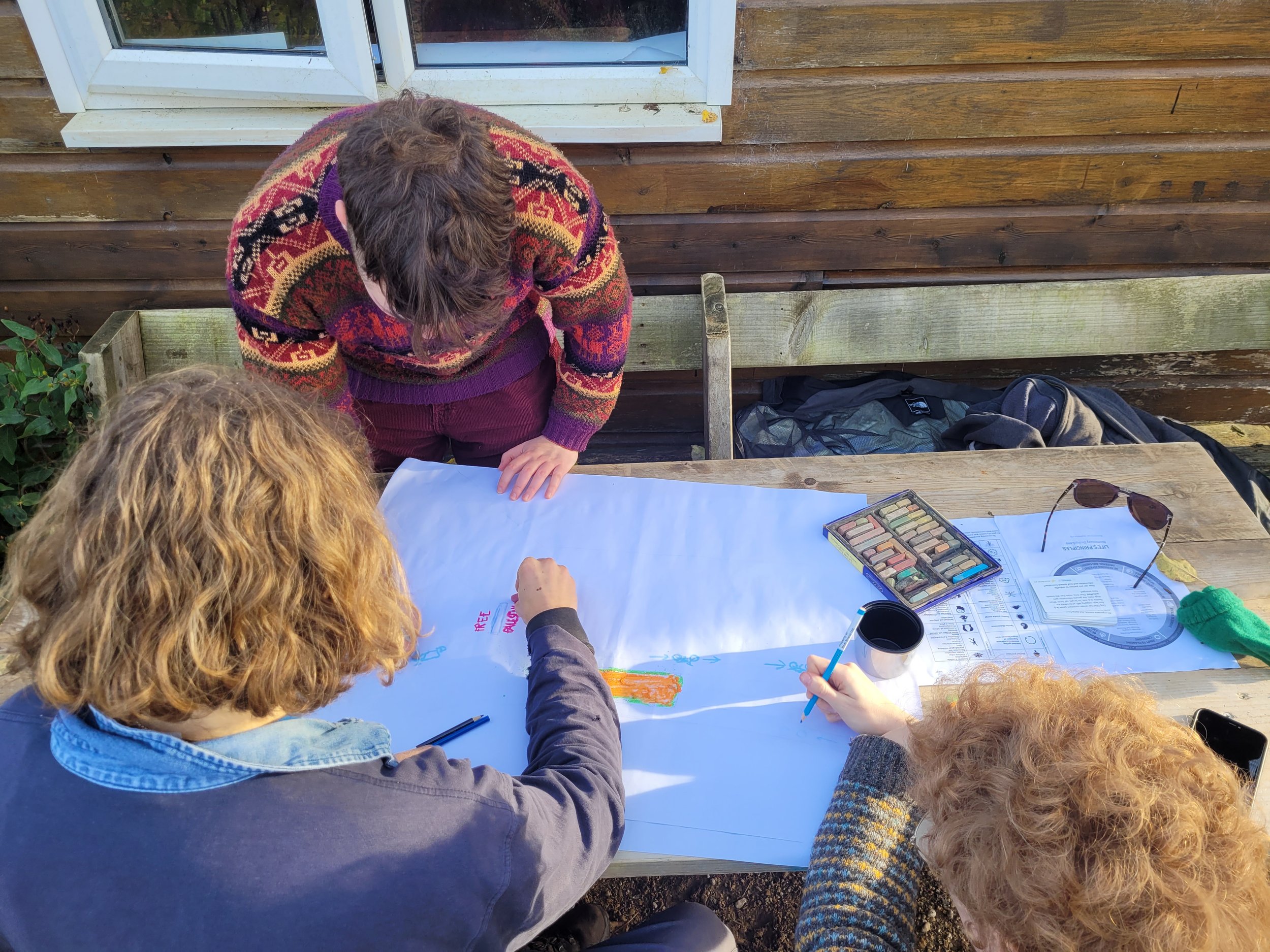 We have a strong belief that 'the whole is greater than the sum of its parts' and our design project work is carried out in groups; each student bringing a unique perspective and skillset to the task. We also believe that Permaculture can be a powerful tool for empowering and meeting needs within the community. We find 'real life' green spaces in the network of Bristol for our design project sites; ensuring students learn to design within the context of complex, living systems of people and land.